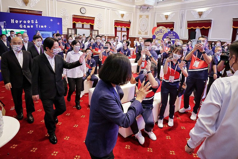 蔡英文總統今(1)日下午偕同賴清德副總統出席「Our Heroes!台灣英雄 凱旋派對」,歡迎奧運英雄來到總統府,總統恭喜及感謝代表團在這次的東京奧運締造了史無前例的好成績。總統強調,邁向2024巴黎奧運,黃金計畫將會持續下去,而且會越來越好,為選手及後勤團隊提供更多支持。