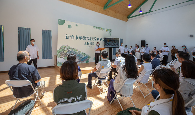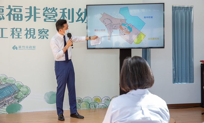總統抵達後,首先聽取新竹市長林智堅簡報「打造孩子的知識遊樂地」,瞭解華德福幼兒園興建過程、教育理念及建築設計等。