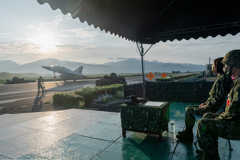 蔡英文總統今(15)日一早前往屏東視導漢光37號演習「佳冬戰備跑道戰機起降」演練,驗證戰機降落佳冬戰備道實施油彈整補再戰的應變能量,肯定國軍兼顧防疫及精實操演。