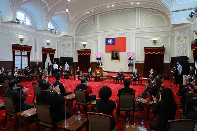 訪賓一行由農業委員會副主任委員陳添壽陪同,前來總統府晉見總統,總統府秘書長李大維也在座。