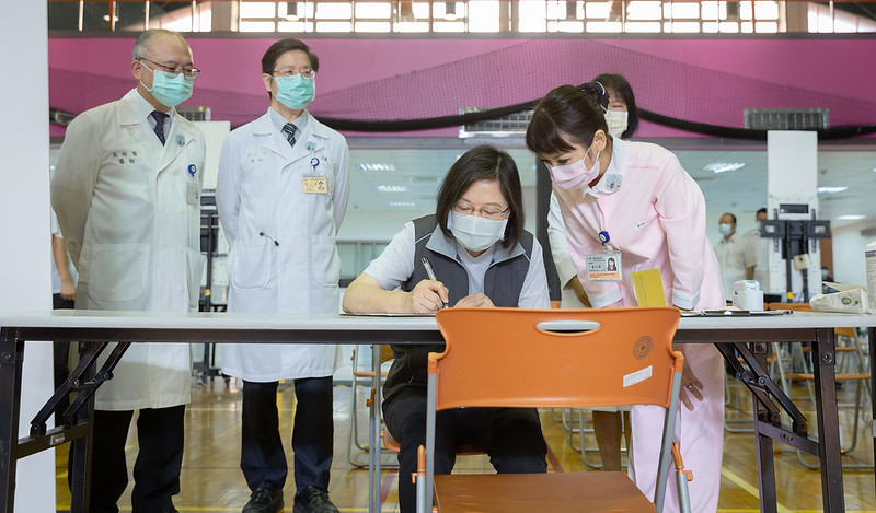 總統與副總統先後抵達現場,持健保卡完成報到後,續依動線規劃量測體溫、接受醫師問診及簽署接種同意書。總統與副總統於完成疫苗接種後離開,後續並由醫療團隊掌握身體狀況。