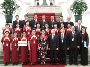 日本心音合唱團、新加坡華新合唱團、泰華婦女合唱團、紐西蘭鄉音合唱團、巴西客家合唱團、加拿大溫哥華溫馨合唱團、美國紐約海天鄉音合唱團、大台北華府合唱團及洛杉磯南加州台灣會館合唱團,上午由僑務委員會副委員長廖勝雄陪同,前來總統府參加副總統的茶會。