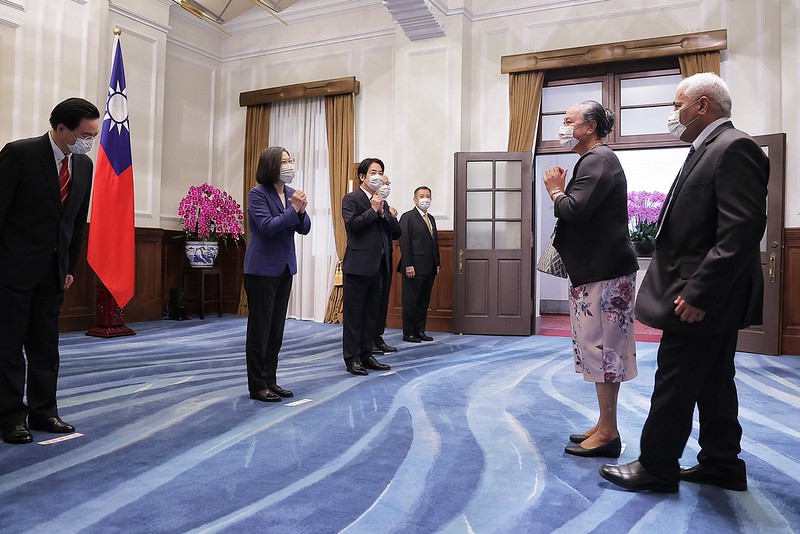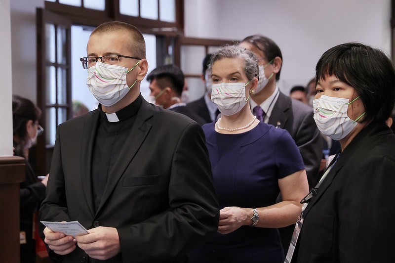 今日前來致賀15國駐臺使節包括:使節團團長暨聖克里斯多福及尼維斯駐臺大使哈菁絲(Jasmine Elise Huggins)、帛琉共和國駐臺大使歐克麗(Dilmei Louisa Olkeriil)、吐瓦魯國駐臺大使涂莉梅(Limasene Teatu)暨夫婿、聖露西亞駐臺大使羅倫(Edwin Laurent)、瓜地馬拉共和國駐臺大使葛梅斯(Willy Alberto Gómez Tirado)伉儷、聖文森及格瑞那丁駐臺大使柏安卓(Andrea Clare Bowman)、諾魯共和國駐臺大使凱法斯(Jarden Kephas)伉儷、宏都拉斯共和國駐臺大使寶蒂絲妲(Eny Yamileth Bautista Guevara)、尼加拉瓜共和國駐臺大使李蜜娜(Mirna M. Rivera)、貝里斯駐臺大使碧坎蒂(Candice A. Pitts)、海地共和國駐臺大使潘恩(Roudy Stanley Penn)、巴拉圭共和國駐臺臨時代辦彬文勇(Carlos Vidal Pintos)、馬紹爾群島共和國駐臺臨時代辦戴安珍(Anjanette Celles Anjel)、史瓦帝尼王國駐臺臨時代辦庫內內(Lindiwe Cynthia Trizah Kunene)、教廷一等秘書達保祿(Pavol Talapka);駐臺機構包括:美國在台協會台北辦事處處長孫曉雅(Sandra Oudkirk)、日本台灣交流協會台北事務所代表泉裕泰(Hiroyasu Izumi)伉儷、歐洲經貿辦事處處長高哲夫(Filip Grzegorzewski)、新加坡駐台北商務辦事處代表葉偉傑(Yip Wei Kiat)、斯洛伐克經濟文化辦事處代表博塔文(Martin Podstavek)伉儷、波蘭臺北辦事處代理處長李波(Bartosz Ryś)伉儷、捷克經濟文化辦事處代理代表唐笛(Dita Taborska)暨夫婿、澳洲辦事處代表露珍怡(Jenny Polyxeni Bloomfield)、印度台北協會會長戴國瀾(Gourangalal Das)伉儷、駐臺北韓國代表部代表姜永勳(Young Hoon KANG)伉儷、紐西蘭商工辦事處代理代表李思怡(Stephanie Lee)、德國在台協會代表許佑格(Jörg Wolfram Polster)伉儷、英國在台辦事處代理代表嚴濤暮(Tom Burn)伉儷、法國在台協會副主任戴寧智(Guillaume Delvallée)暨配偶及加拿大駐台北貿易辦事處代理代表敬獵人(Eelco Hendrik Jager)伉儷等;國際組織代表包括:亞蔬—世界蔬菜中心主任代理人林彥蓉(Yann-rong Lin)及亞洲太平洋地區糧食與肥料技術中心主任張淑賢(Su-San Chang)暨夫婿等。