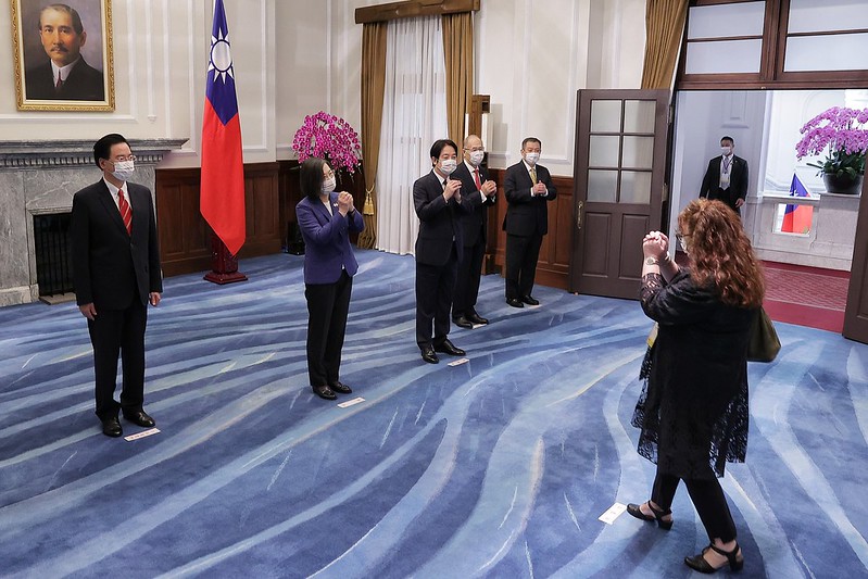 蔡英文總統偕同賴清德副總統今(10)日上午在總統府接受參加中華民國110年國慶活動的各國駐臺使節、駐臺機構及國際組織代表,致賀我國雙十國慶。