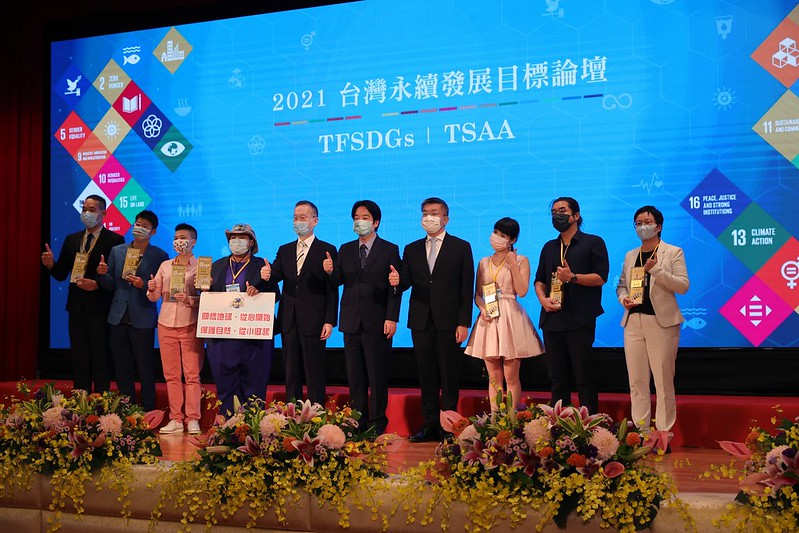 隨後,副總統親頒「2021臺灣永續發展目標行動獎」及「傑出永續青年獎」予獲獎單位代表。