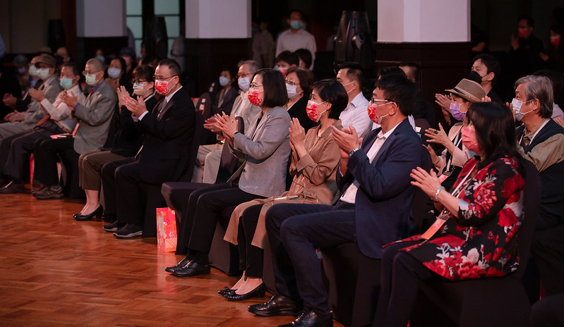 隨後,總統也與在場貴賓共同欣賞藝文團體結合傳統與搖滾,以及流行與在地等元素的精彩演出。包括文化部長李永得、中華文化總會副會長鄭麗君、秘書長林錦昌等亦出席是項活動。