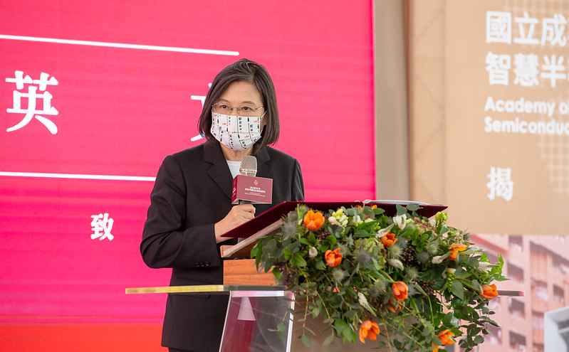 蔡英文總統今(22)日上午出席「國立成功大學智慧半導體及永續製造學院揭牌儀式」,期待透過半導體學院的設立,以及產學界與政府的共同努力,把臺灣打造成為亞洲「半導體先進製程中心」,持續提升臺灣在全球產業鏈的關鍵地位。