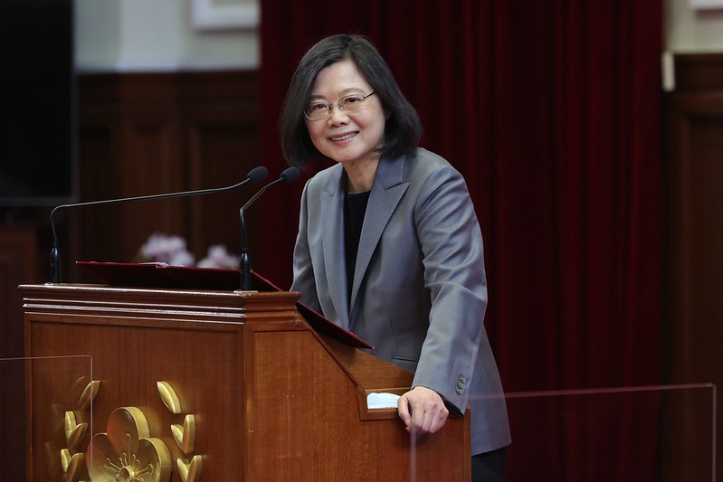 總統接著說,此外,今年「優良外國駐臺商務單位」獎項有5個單位獲獎,她要感謝各國駐臺使節代表的付出,讓雙方國家之間持續加強合作交流、增進彼此情誼,特別是在全球疫苗短缺之下,來自日本的友情疫苗,讓我們非常感謝和感動。
