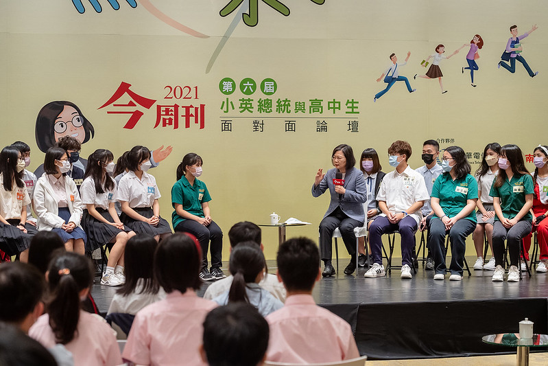 蔡英文總統今(30)日下午出席《今周刊》舉辦「小英總統與高中生面對面論壇」,以「青春無懼,未來我行」為題,與學子們進行經驗分享與交流,勉勵同學們勇敢嘗試不同選項,進行跨領域學習,不要被單一領域限制住自己。並表示她身為總統的責任,就是要讓臺灣這塊土地,永遠自由多元,提供大家探索未來的無限可能。