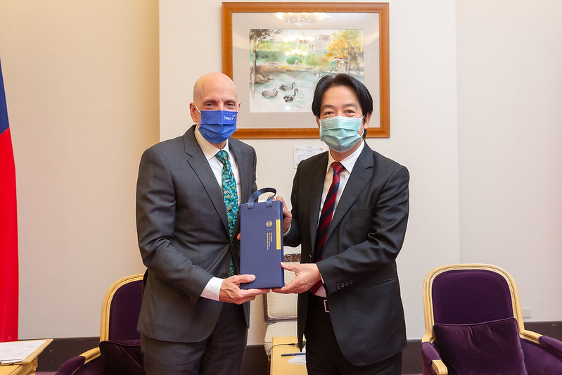 副總統並藉此機會感謝美國政府對臺灣的支持,特別是捐贈臺灣累計400萬劑的疫苗,對臺灣的防疫工作幫助非常大。