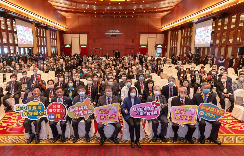 隨後,總統頒發全國醫師防疫特殊貢獻獎,並表揚行醫70年資深醫師。包括衛福部長陳時中、無任所大使吳運東、醫師公會全國聯合會理事長邱泰源等亦出席是項活動。
