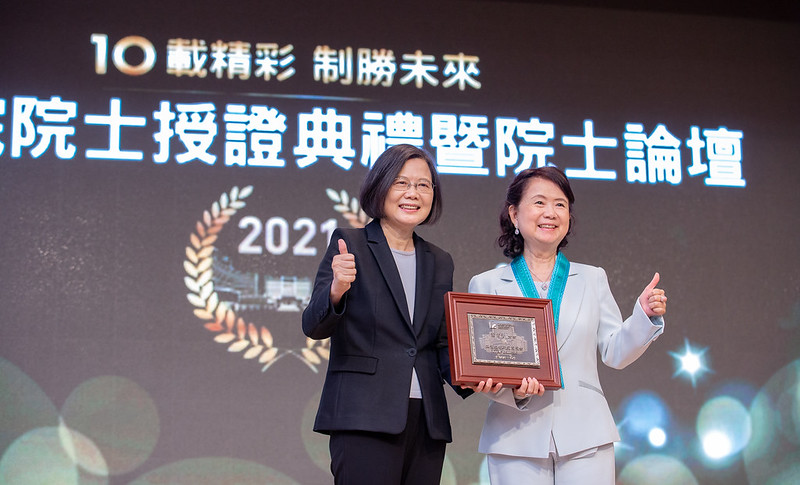 接著,總統也一一介紹新任院士的事蹟。她指出,吳敏求院士是旺宏電子董事長兼執行長。早在30年前,就把現在盛行的「數位轉型」概念導入半導體製程,非常有遠見,也讓旺宏目前在非揮發性記憶體方面具有領先全球的成績。她也感謝吳院士當年從美國回到臺灣創業,號召非常多優秀的人才共同回臺,對臺灣整體產業創新有非常大的助益。
