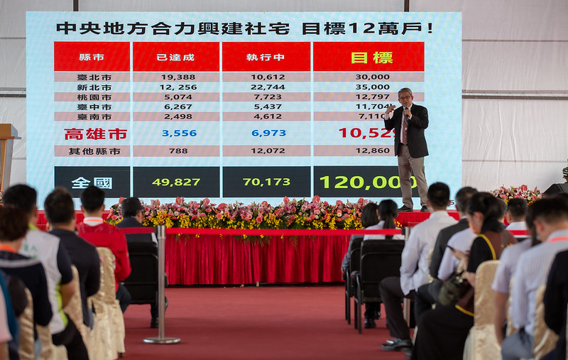 總統說,落實居住正義是她上任以來最重要的政策之一,推動社會住宅是實現居住正義很關鍵的措施,她在2016年的政見也設下一個目標,希望8年內有20萬戶的社會住宅,其中有12萬戶是直接興建,有8萬戶是以包租代管的方式,從2017年開始分兩階段來進行。
