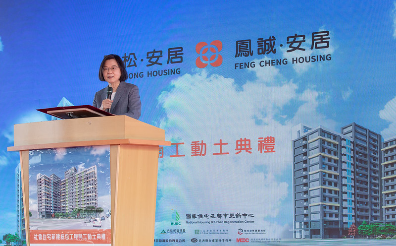 蔡英文總統今(19)日下午出席「國家住都中心高雄市鳳山區社會住宅新建統包工程開工典禮」時指出,「高雄市社會住宅推動平台」是中央地方攜手合作的典範,未來還會在高雄不同行政區,規劃更多社會住宅,期盼讓高雄有更好的居住環境,並能提供給市民朋友一個安心、安全、優質的居住環境。