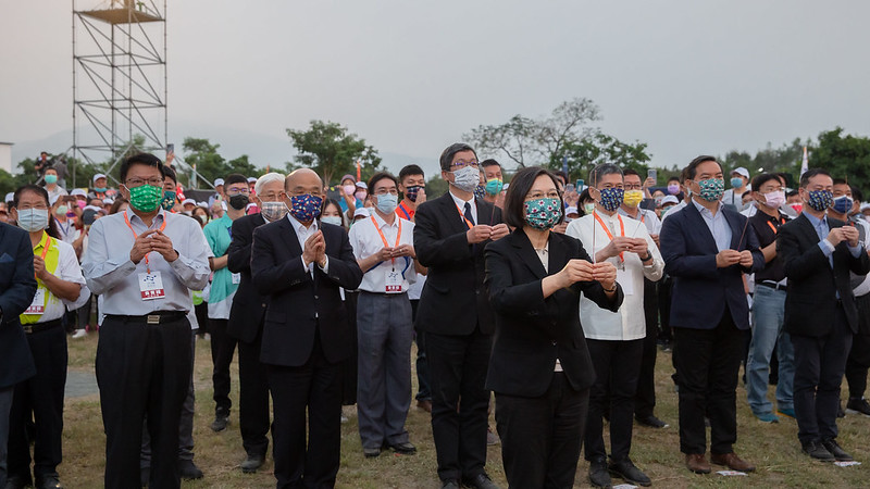 總統抵達後,首先到祭壇上香、獻盤花,與現場貴賓一同進行「盤花敬神敬先民」儀式。