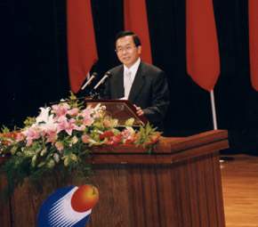 跨世紀的二OOO年大選,台灣經歷了歷史上第一次的政黨輪替,新政府在全球不景氣的外在經濟環境及內在政治重組的紛擾下,執政至今即將屆滿一年。在邁向新的里程的前夕,中央各部會重要機關首長能齊聚一堂,凝聚團隊政策共識、規劃國家發展願景,水扁覺得深具意義,也充滿樂觀和希望。