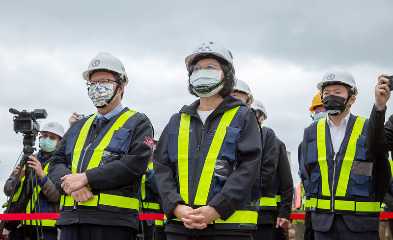 總統進一步指出,第二,就是三接沒有蓋在藻礁上。當然,要保護的不只是觀新藻礁,還有大潭藻礁。今天大家也看了大潭藻礁,三接工程已經蓋了三分之一,剛剛大家也都看到,大潭藻礁還是在原處,稍早曾次長也與大家說明,這就是我們三接再外推方案的努力,先避開岸邊的潮間帶藻礁,只用既有已經填過的地方,把開發面積從馬政府時代規劃的232公頃,縮小九成,剩下23公頃。
