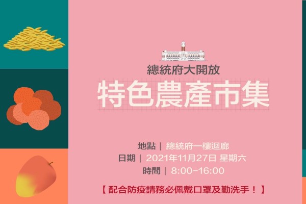 總統府11月27日(週六)上午8時至下午4時開放參觀,開放區域為總統府一至三樓,包括敞廳、大禮堂、常設展「府-建構」、「府-日常」、「府-聲音」、「府-遇見」、「府-時代」、「府-想像」、「府-印象」及「府-我在」、「萬聲之嶼特展」、郵局、交誼廳、紀念品中心及南苑庭園。