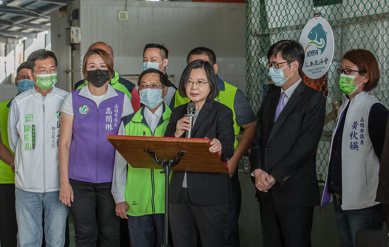 蔡英文總統今(15)日下午前往高雄訪視「永安LNG(液化天然氣)冷排水養殖試驗場」及「永安石斑養殖漁業」,肯定透過養殖魚塭結合綠能發電,創造漁電共生的新型態循環經濟模式,並期待養殖漁業持續往前推進,讓優質產品打開國際市場。