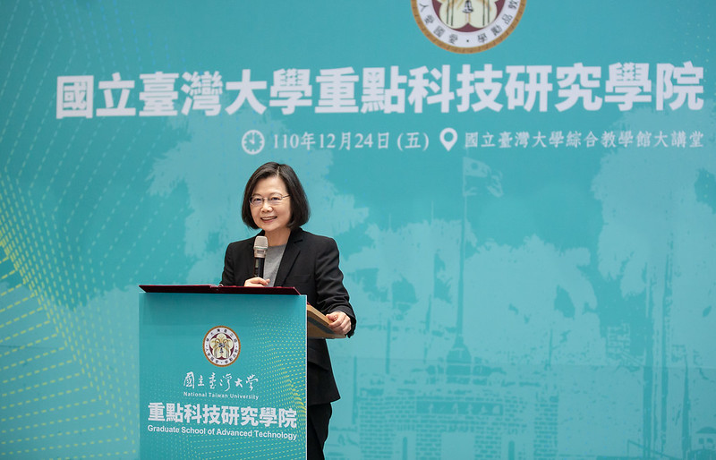 蔡英文總統今(24)日上午出席「國立臺灣大學重點科技研究學院揭牌典禮」表示,臺灣四大半導體學院,將全面啟動、陸續招生開課,未來將透過「產學共創」的新模式,培養出下個世代的科技人才,並提升產業的研發能力,讓臺灣邁向「半導體先進製程中心」的目標。