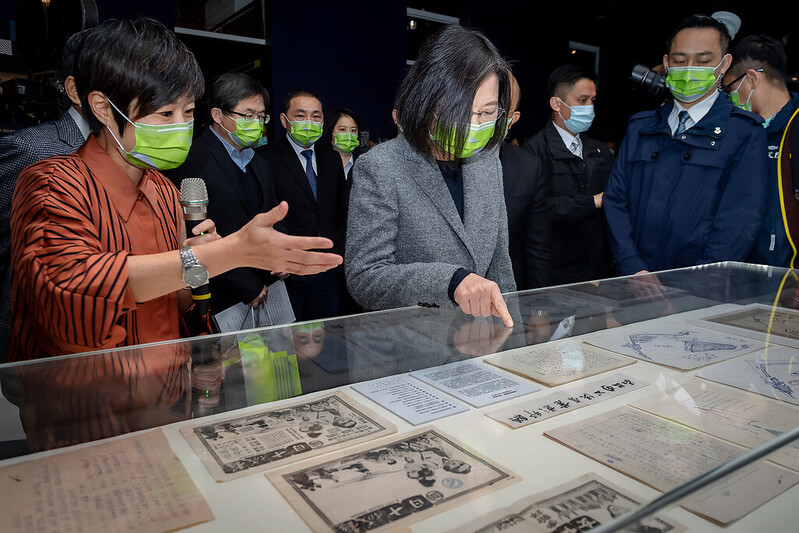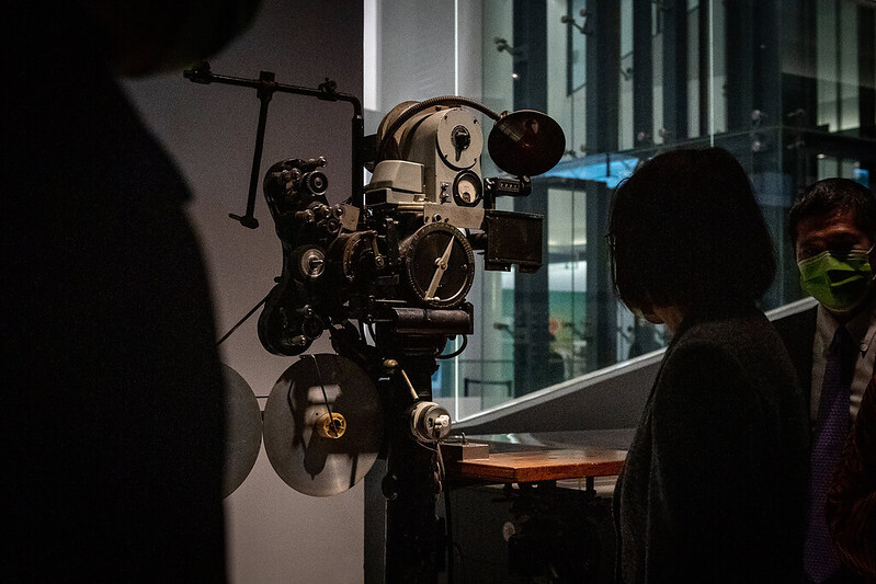 隨後,總統與現場貴賓一同進行揭幕儀式,並在影視聽中心執行長王君琦導覽下,參觀臺灣影視聽文物展、影視聽發展大事記、膠捲保存與修復、數位修復臺灣電影等展區。