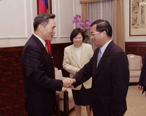 香港台灣工商協會訪問團上午由行政院大陸委員會主任委員蔡英文陪同,前來總統府會見總統。總統府副秘書長陳哲男也在座。