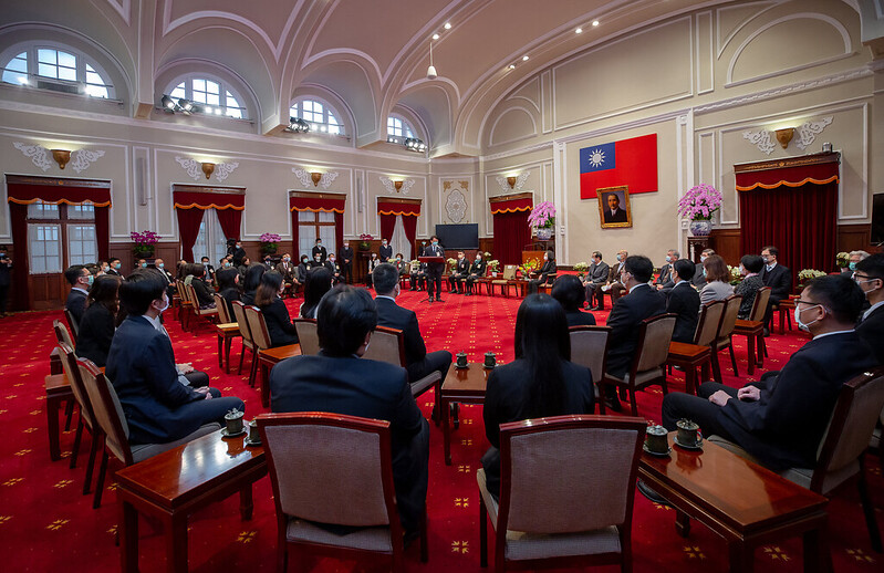 總統致詞時表示,每年農曆春節前後,都會邀請「全國模範公務人員代表」來到總統府,除了要肯定得獎者的工作表現,更要表達政府的感謝。今天在座的同仁來自全國各地,不僅長期奉獻專業,用心服務民眾,在疫情期間,也全力配合各項防疫工作。