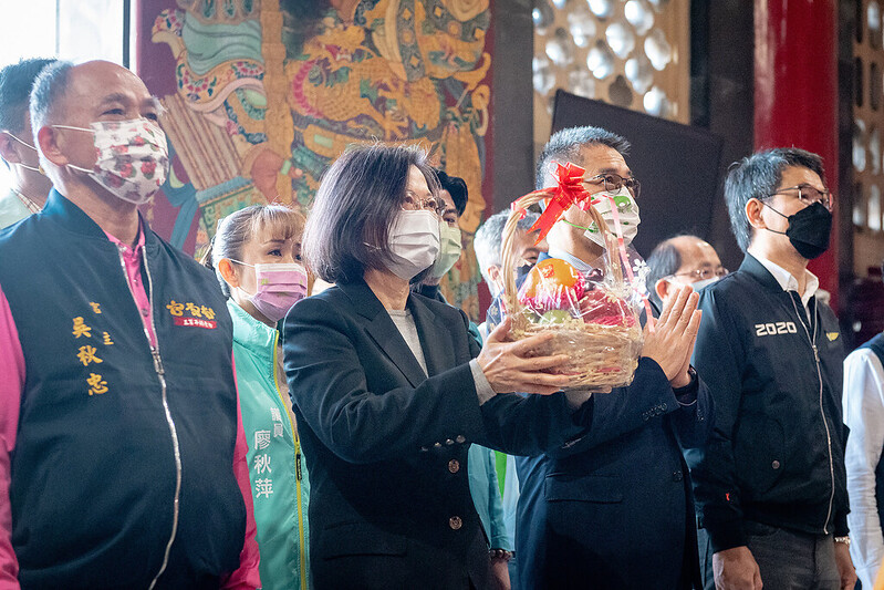 蔡英文總統今(13)日上午前往雲林「南聖宮」參香,祈求武聖關公保佑臺灣風調雨順、國泰民安,並表示,臺灣相較於世界其他國家,因為疫情控制得較好,經濟發展也相對穩定。她也呼籲年滿18歲,且已經接種兩劑疫苗滿12週的民眾,盡快接種第三劑,以提升全體國民的免疫力。