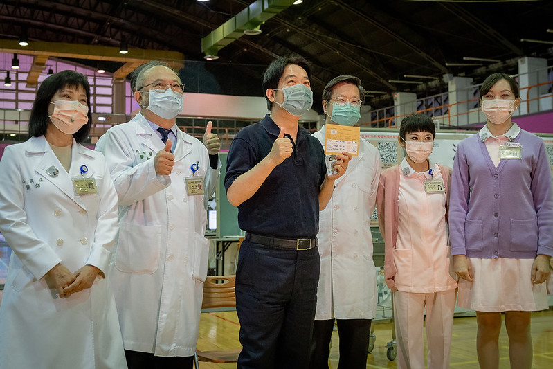 蔡英文總統及賴清德副總統今(15)日一早分別至預約地點「台大醫學院體育館」,依照相關流程接種第三劑高端疫苗。