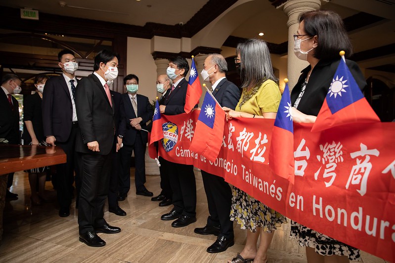 專機停妥後,我國駐宏都拉斯共和國大使溫曜禎及宏國外交部禮賓司長瓦達雷斯(Ramón Valladares)登機迎接副總統,宏國副總統李薇拉(María Antonia Rivera)及外交次長巴拉翁納(Jose Isaias Barahona)則於機梯前親迎,雙方拱手寒暄致意。隨後,副總統沿紅地毯接受禮兵致敬,並登上受禮臺向歡迎人員揮手致意。