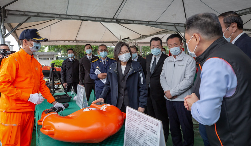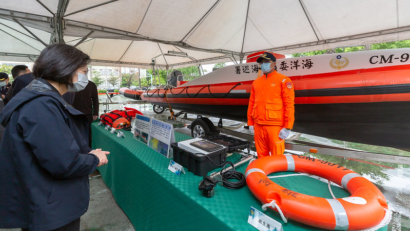 總統抵達後,首先聽取海巡署第五巡防區指揮部主任簡明勝進行工作簡報,接著聽取海巡同仁導覽介紹「行動救援車及ATV救援沙灘車」、「遙控式動力救生圈及手持式熱顯像儀」、「30P及60P救生艇」等裝備。