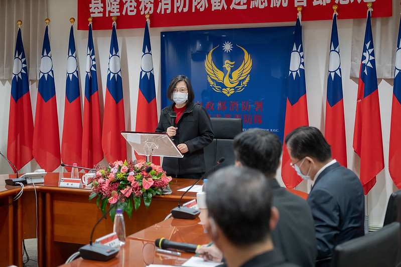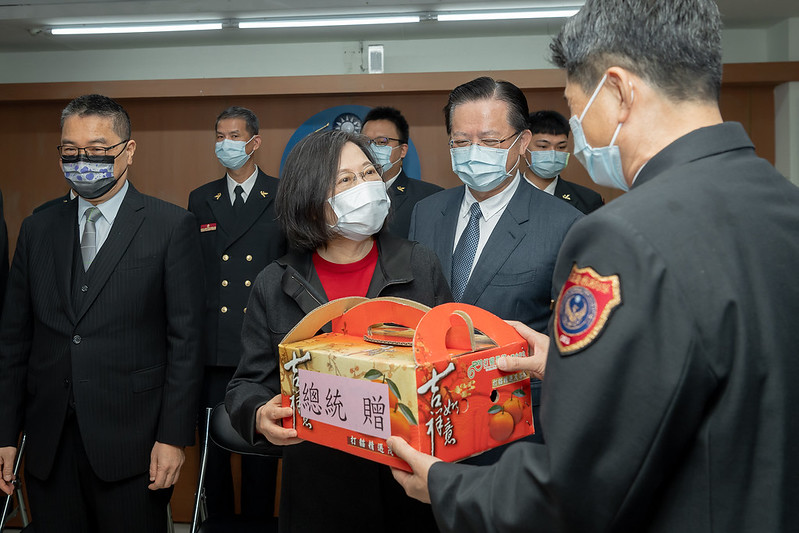 總統致詞表示,今天是大年初二,她首先要跟大家說聲新年快樂,今天先來到臺灣頭基隆,稍後還會到桃園、新竹,感謝春節期間所有辛苦值班的同仁。