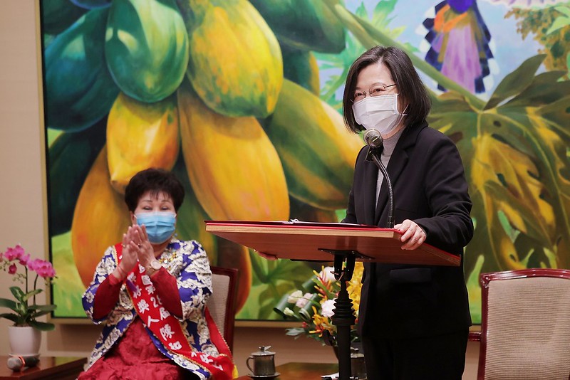 總統指出,來自高雄市政府社會局的陳和美女士,熱心協助弱勢婦女、孩童,以及高風險家庭走出困境,是我們志工的楷模;長期在臺北榮總服務的潘鄭淑霞女士,疫情期間也擔任防疫工作的志工,提供民眾諮詢服務,讓居家隔離的朋友感受到更多的溫暖;擔任臺東縣政府文化處志工的鄭梅玉女士,在協助推廣藝文活動上盡心盡力,為東臺灣注入藝術文化的養份。