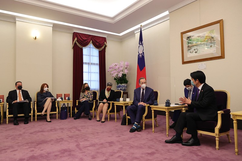 賴清德副總統今(2)日上午接見「美國總統拜登指派之跨黨派資深代表團」,期盼代表團能推動臺美簽訂「雙邊貿易協定」(BTA)及協助臺灣加入「跨太平洋夥伴全面進步協定」(CPTPP),讓臺灣對印太區域及國際社會和平穩定做出貢獻。