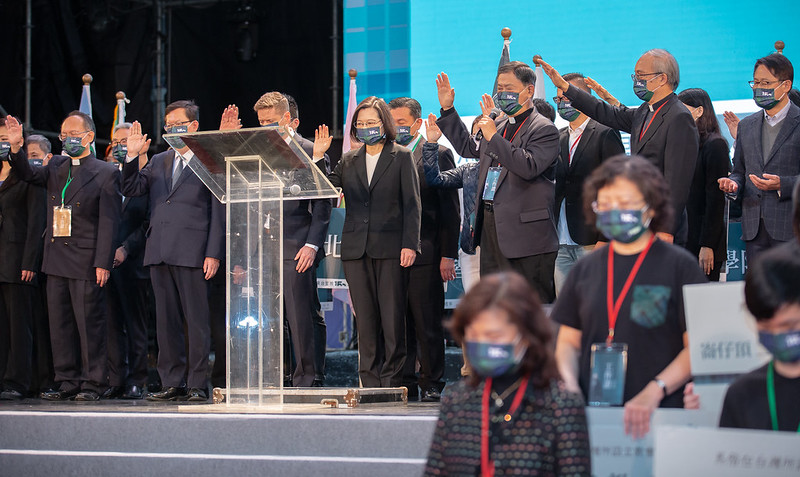 總統表示,現在疫情還沒結束,她要拜託大家繼續做好防疫,也請大家持續為世界和平及國家人民祈禱。未來,讓我們繼續走在追求公義的道路上,持續為臺灣奮鬥打拚,願上帝祝福臺灣。