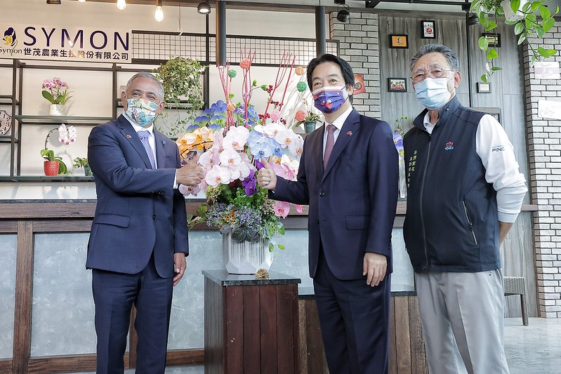 賴清德副總統今(11)日上午陪同貝里斯總理布里仙紐(John Briceño)伉儷參訪臺南「臺灣蘭花生技產業」,實地瞭解臺灣蘭花生技實力。午間並以午宴款待,感謝貝國政府與人民的支持,相信在兩國共同努力與相互扶持下,臺貝情誼一定會持續茁壯。
