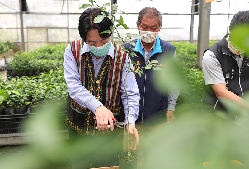 副總統也在農場主人張峰誠的引導下,參觀種苗場及嫁接柑橘種苗,與現場貴賓一同體驗種植柑橘的樂趣。