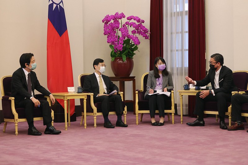 訪賓一行由台灣網路暨電子商務產業發展協會理事長何英圻率領,經濟部次長陳正祺陪同,前來總統府拜會副總統。