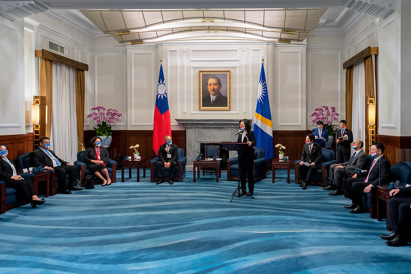 繼以軍禮歡迎馬紹爾群島共和國總統柯布亞(David Kabua)伉儷訪問團後,蔡英文總統今(22)日上午偕同賴清德副總統,與馬紹爾群島共和國總統柯布亞雙邊會晤時指出,兩國將成立「臺馬氣候變遷調適應變基金」及完成「臺馬農業合作協定」的修訂,並強調臺灣會和馬紹爾群島攜手努力,為兩國永續發展打下穩固基礎,一起為全球的進步繁榮做出更多貢獻。