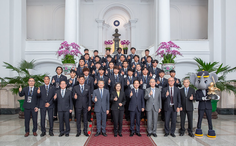中信兄弟球隊包括教練、球員、職員等一行由中國信託慈善基金會董事長辜仲諒、中國信託育樂股份有限公司董事長陳國恩及領隊劉志威率領,中華職業棒球大聯盟會長蔡其昌、秘書長楊清瓏、教育部體育署代理署長林騰蛟陪同,前來總統府晉見總統,總統府秘書長李大維也在座。