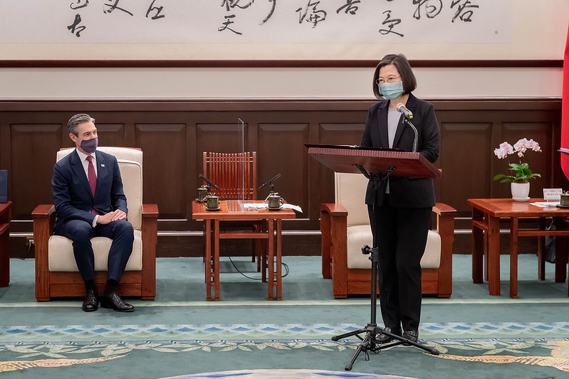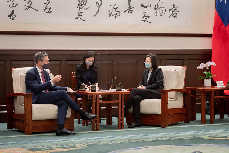 訪賓一行由外交部長吳釗燮陪同,前來總統府晉見總統,國家安全會議秘書長顧立雄也在座。