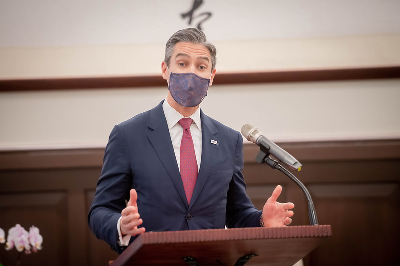隨後,威爾森會長致詞時感謝蔡總統及臺灣人民,對訪團表達高度歡迎。他指出,臺灣的民主蓬勃發展,可說是全世界的典範,從立陶宛到烏克蘭,從阿富汗到香港,臺灣更展現出全球的民主團結。