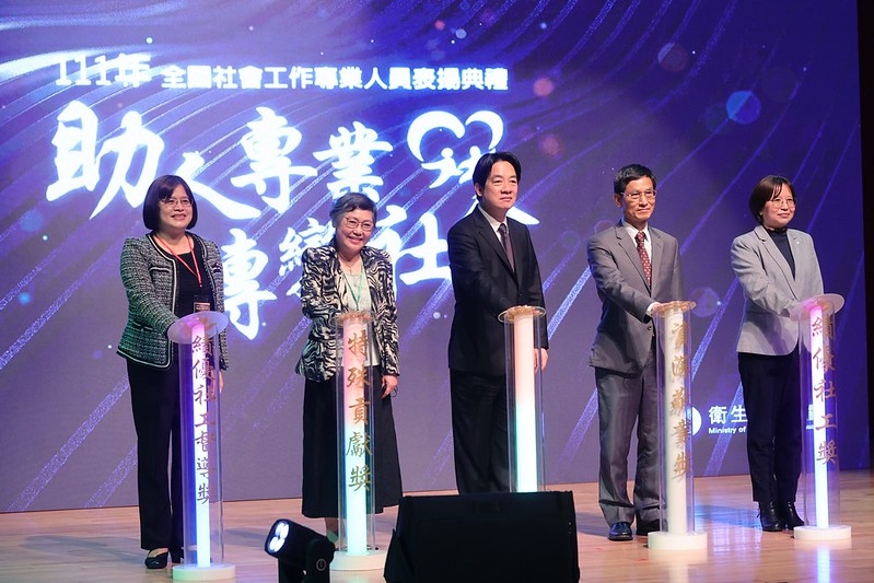 賴清德副總統今(30)日下午出席「111年全國社會工作專業人員表揚典禮」肯定社工人員貢獻,並表示,政府與第一線社工人員站在一起,將持續推動政策、投入經費,期盼社工與政府共同奮鬥,讓社會安全網更加完善。