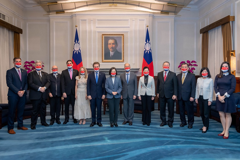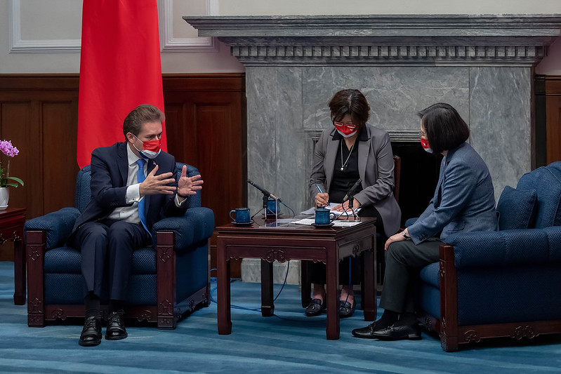 訪賓一行由經濟部長王美花、外交部次長俞大㵢陪同,前來總統府晉見總統,總統府秘書長李大維也在座。