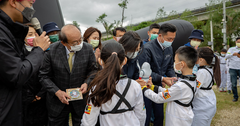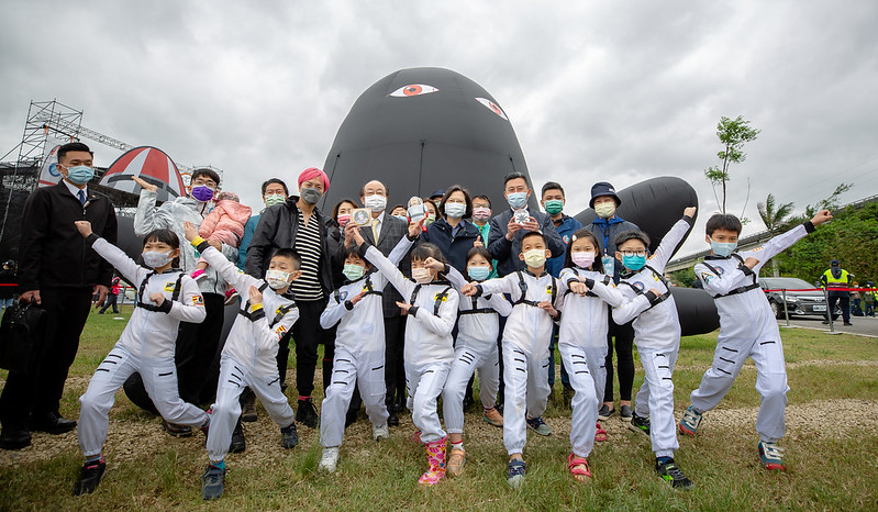 最後,總統祝福「2022新竹市兒童藝術節—風的運動場」圓滿成功,也要請現場的爸爸、媽媽和小朋友,一起準備好,「我們馬上就要上太空、大冒險!」