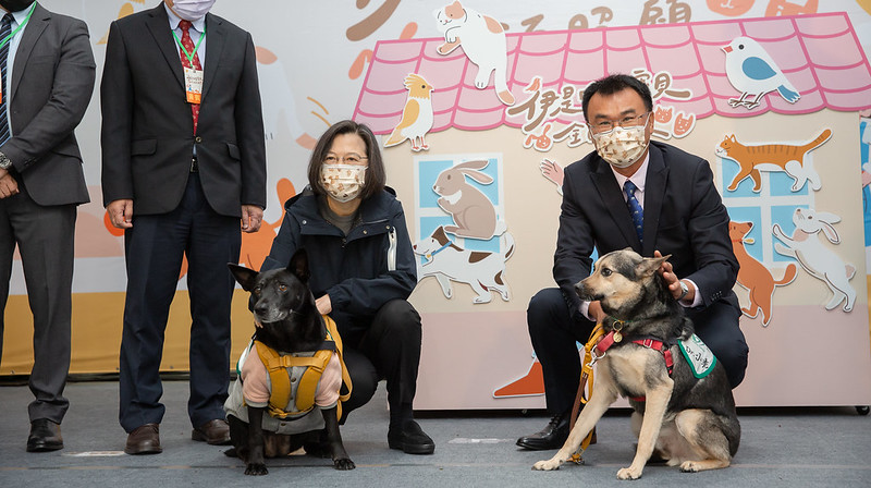 總統也鼓勵大家收養無家可歸或是辛苦工作退役後的毛小孩,讓更多的毛小孩能夠得到家的溫暖。她也感謝動保團體的朋友及相關業者,長期關心動保議題,和政府一起努力,為毛小孩打造優質的環境。