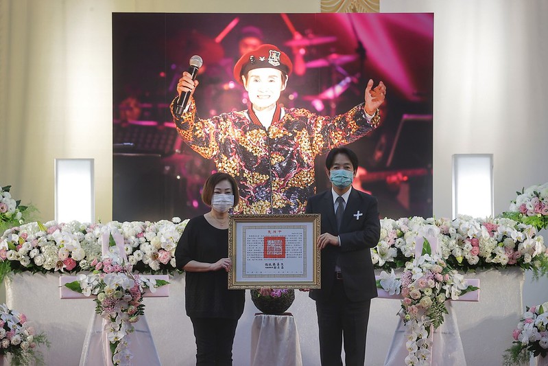 賴清德副總統今(15)日上午出席歌壇耆宿文夏先生告別禮拜,代表蔡總統頒贈褒揚令,由文夏先生長女王文姬女士代表接受,表彰其對臺灣傳統歌謠及音樂文化發展的貢獻。