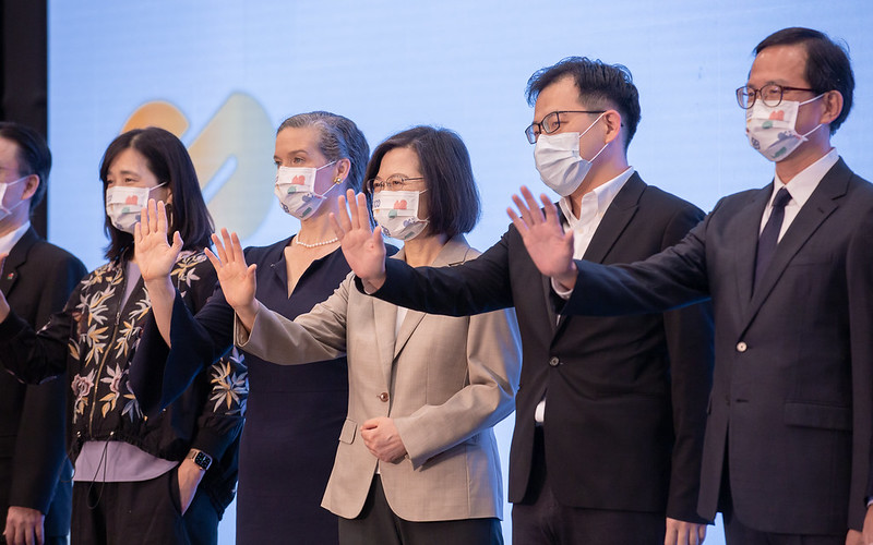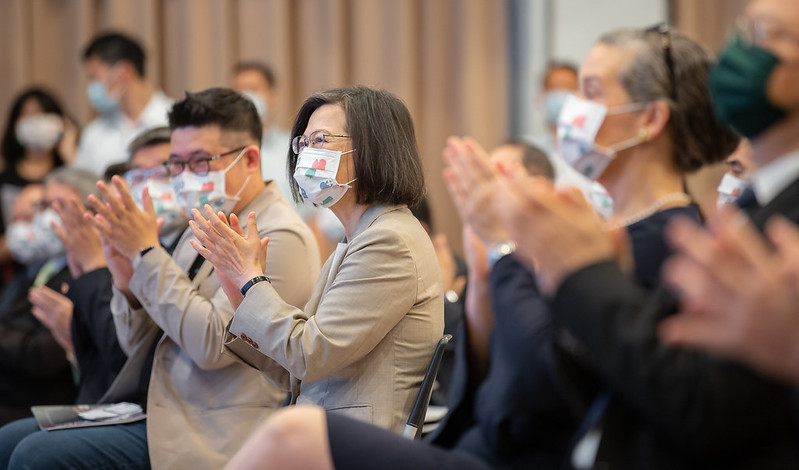 總統致詞時表示,今天是「世界地球日」,去年的今天,她也前來參加行動高峰會,並且宣布,要以務實前瞻的方式,來規劃「2050淨零排放」的路徑。