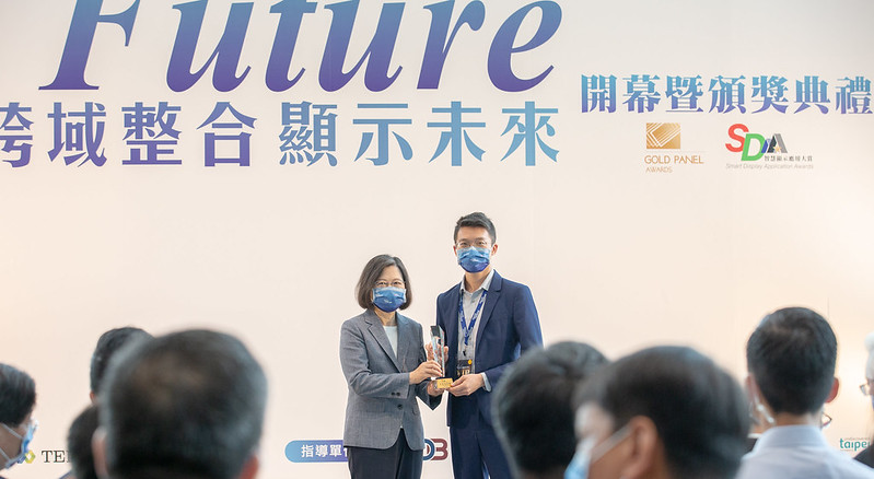 隨後,總統頒發「顯示器元件產品技術獎」與「智慧顯示應用大賞」獎座予得獎企業代表,肯定他們促進相關產業發展、提升臺灣競爭力的傑出表現。