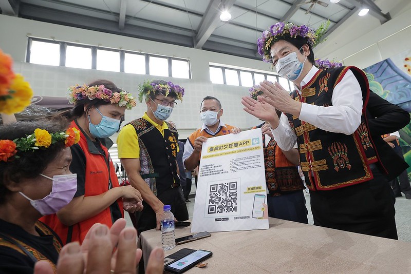隨後,副總統現場教導部落長者下載「臺灣社交距離App」,並宣導App可以自動比對有無接觸過確診者,讓疫調可以更好。副總統也步行至典藏原住民族圖書為主的「讀‧享空間」圖書館參觀,現場也向小朋友宣導防疫觀念、朗讀童書,氣氛溫馨歡愉。